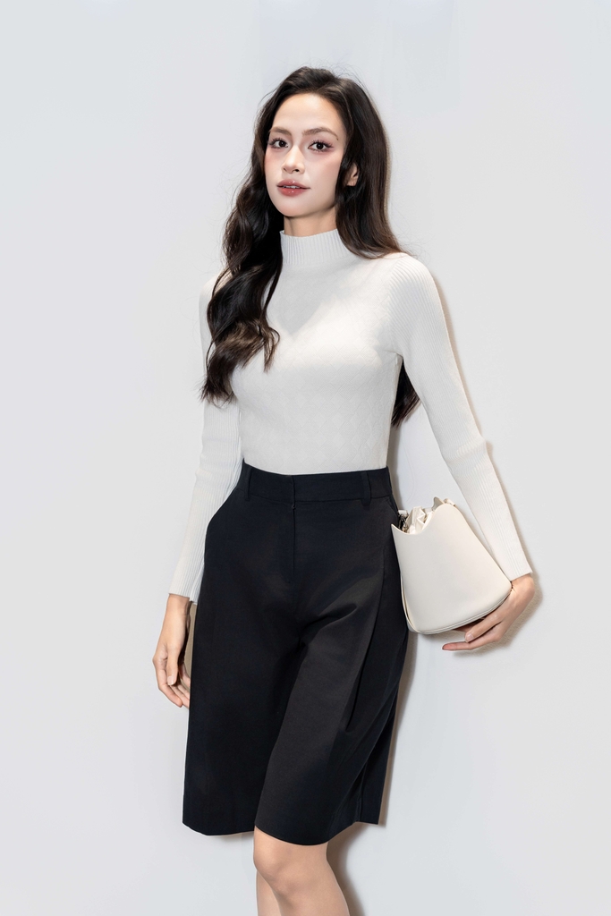 Tạo Phom Đứng Dáng: Quần được thiết kế dáng suông ngắn, tạo độ đứng phom đẹp mắt và thanh lịch.
