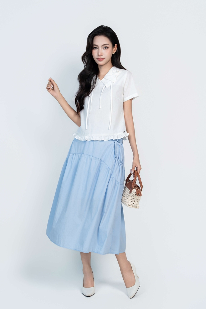 Áo sơ mi basic cổ tim là một item đa năng, dễ dàng phối đồ với nhiều phong cách khác nhau. Bạn có thể kết hợp áo với chân váy, quần jean, quần short,... để tạo nên những outfit ấn tượng. Thêm một chiếc balo hoặc túi xách nhỏ là bạn đã có ngay một set đồ hoàn hảo để đi làm, đi học hoặc đi chơi.