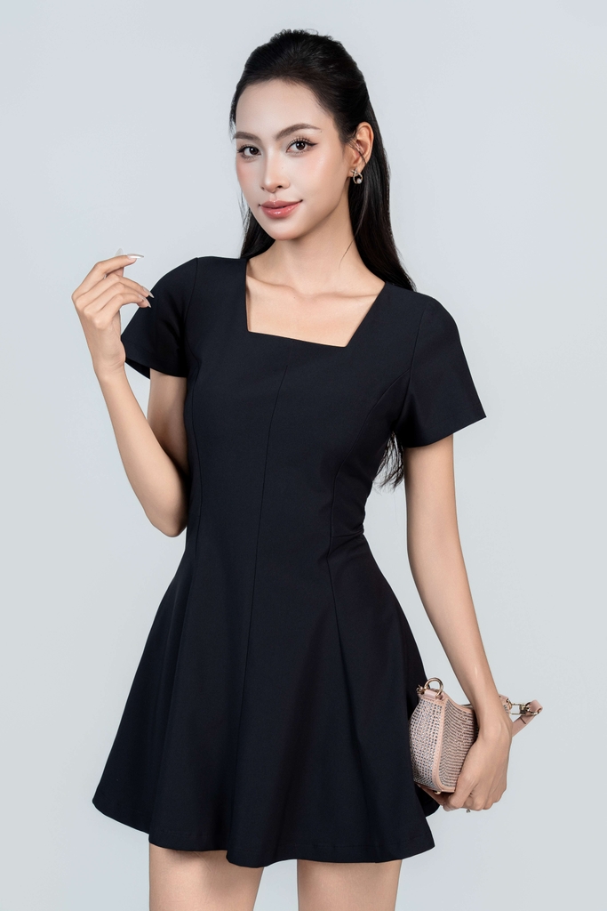 Chân váy xòe duyên dáng tạo hiệu ứng eo thon, đồng thời làm nổi bật vòng ba quyến rũ. |